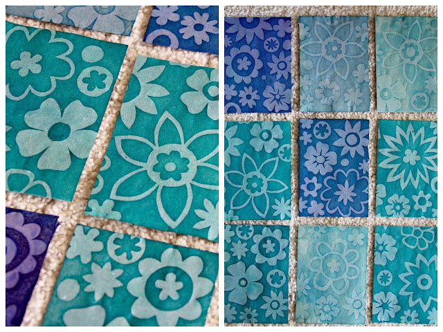 geschnitzt und große Bögen, aus einem etwas festeren Papier, damit bestempelt.